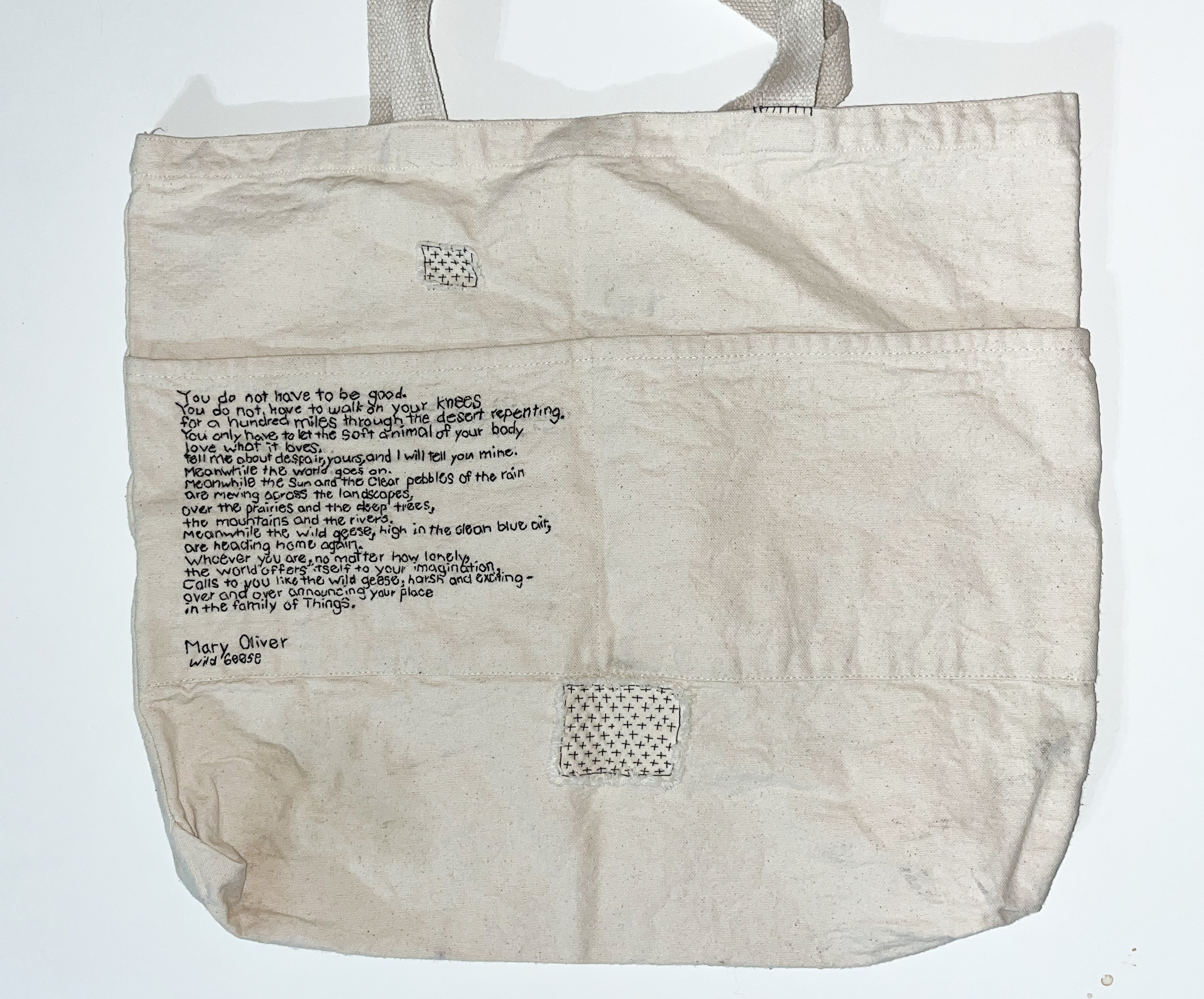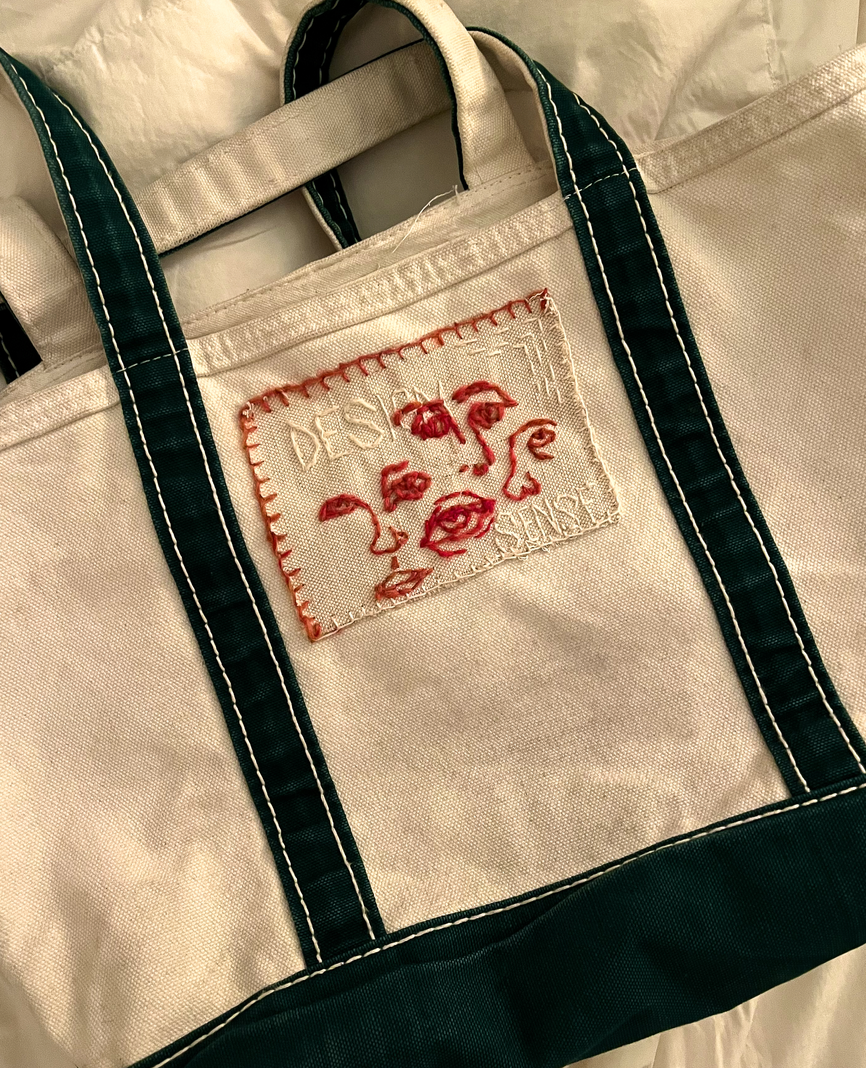 MENDED AND EMBROIDERED TOTE BAG: